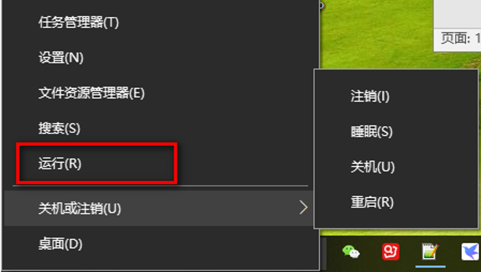 2、再導航欄開始菜單處點擊右鍵,選擇運行選項。
