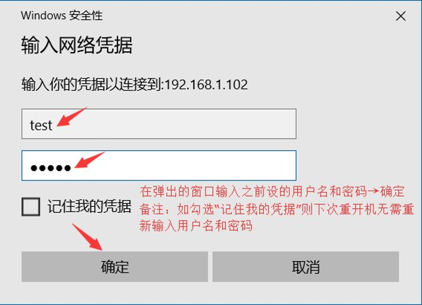 備注:如勾選“記住我的憑據”則下次重開機無需重新輸入用戶名和密碼;