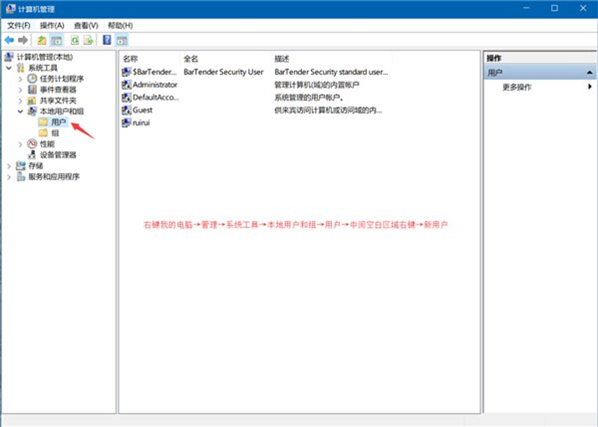 1.右鍵我的電腦→管理→系統工具→本地用戶和組→用戶→中間空白區(qū)域右鍵→新用戶;