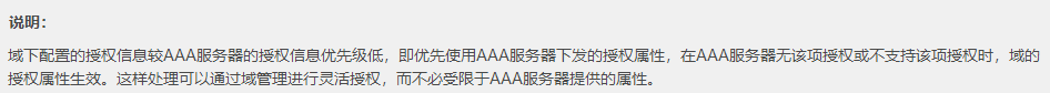 AAA除了提供認(rèn)證,還可以提供授權(quán)和計(jì)費(fèi)這兩種安全功能。AAA通過(guò)域來(lái)進(jìn)行用戶管理,用戶的認(rèn)證、授權(quán)、計(jì)費(fèi)都需要在域下執(zhí)行。所有對(duì)于接入用戶的認(rèn)證方案、授權(quán)方案、計(jì)費(fèi)方案都是先在AAA視圖下創(chuàng)建,再在域視圖下引用對(duì)應(yīng)的認(rèn)證方案、授權(quán)方案、計(jì)費(fèi)方案。