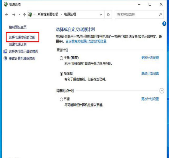 點擊“選擇電源按鈕的功能”,如下圖所示。
