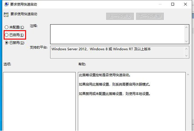 將要求使用快速啟動選擇“已啟用”,點擊確定關(guān)閉。