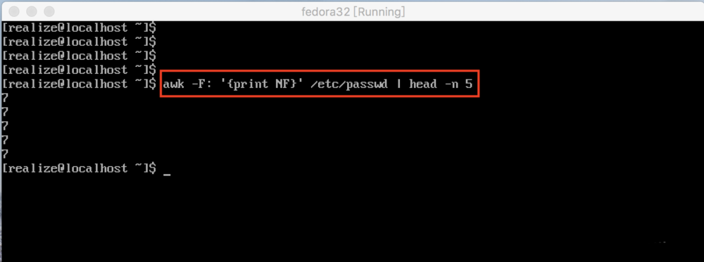 5、awk還可以將每一行最后的一個(gè)字段顯示出來(lái)
