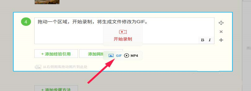4、 拖動(dòng)一個(gè)區(qū)域,開始錄制,將生成文件修改為GIF。