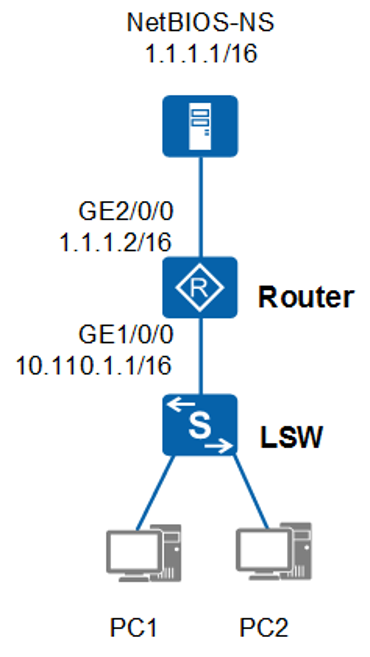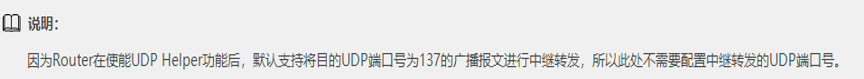1. 因為局域網(wǎng)主機之間要使用主機名進行互訪,所以需要將對方的主機名解析成IP地址。但是,NetBIOS-NS和該局域網(wǎng)不在同一廣播域,局域網(wǎng)內(nèi)主機發(fā)送的UDP類型的NetBIOS-NS Register廣播報文無法送達NetBIOS-NS。這就需要使能Router的UDP Helper功能,將主機發(fā)送的目的端口為137(NetBIOS-NS服務(wù)端口)的UDP廣播報文單播轉(zhuǎn)發(fā)給NetBIOS-NS,完成對主機名的解析。