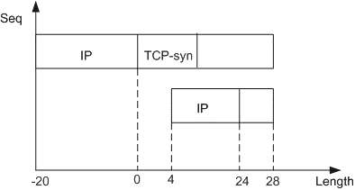 Syndrop攻擊原理和Tear Drop原理一致,區(qū)別在于Syndrop攻擊使用了TCP協(xié)議,F(xiàn)lag為SYN,而且?guī)в休d荷。