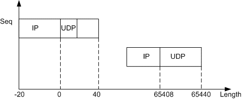 · 第一片載荷長度40字節(jié)(包含UDP頭部,UDP校驗和為0),IP頭部20字節(jié);