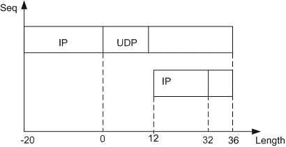 · 第一片IP載荷為36字節(jié)(包含UDP頭部,UDP檢驗和為0);