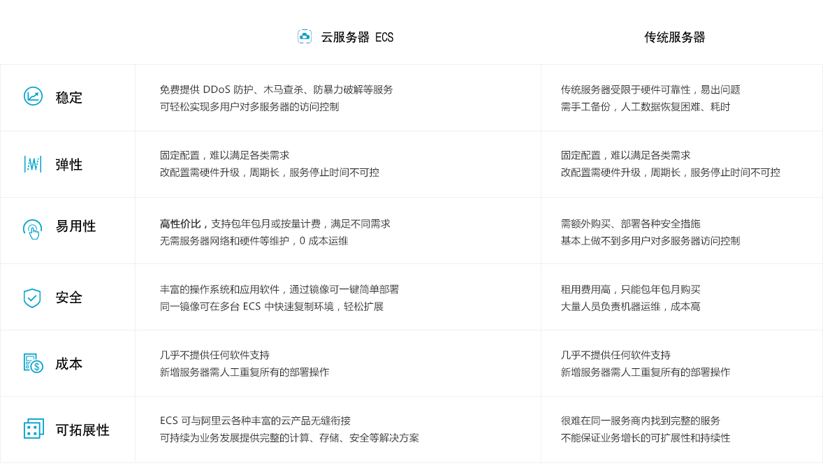 The cloud server (Elastic Compute Service, referred to as ECS) is a simple and efficient IT service, with high and flexible processing capacity, to help you quickly build applications that are safer and stabler, improve operation efficiency, reduce the cost of IT, enables you to focus more on the core business innovation.