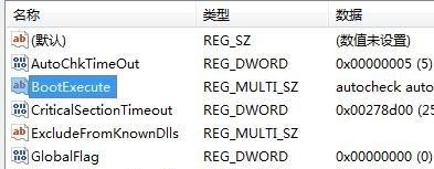 4、雙擊打開右側(cè)“BootExecute”項目;