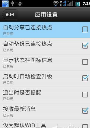 打開“WiFi萬能鑰匙”,切換至“更多”選項卡,點擊“應用設置”項,在打開的界面中,取消勾選“自動分享已連接的熱點”項。接著點擊已連接的“熱點”,從彈出的擴展菜單中選擇“忘記網(wǎng)絡”項。然后再次連接WiFi熱點即可。