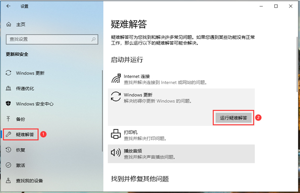 2、在“疑難解答”頁面中點擊“Windows更新”下的“運行疑難解答”。(云服務器搭建)