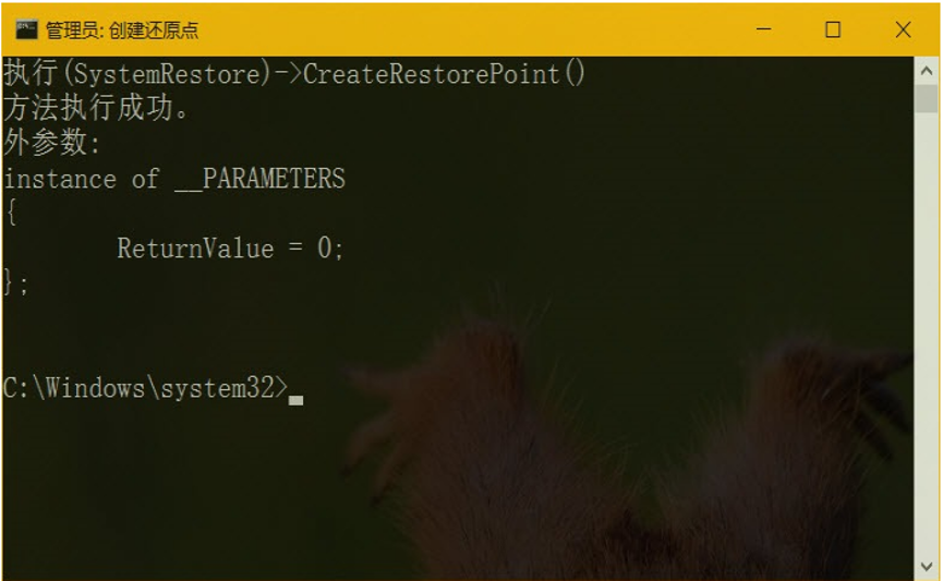 至此,創(chuàng)建 Windows 10 系統(tǒng)還原點(diǎn)的快捷方式就已經(jīng)創(chuàng)建完成,大家可以雙擊進(jìn)行測(cè)試。如果還原點(diǎn)可以正確創(chuàng)建,將看到如下圖的輸出。(管理企業(yè)網(wǎng)絡(luò))