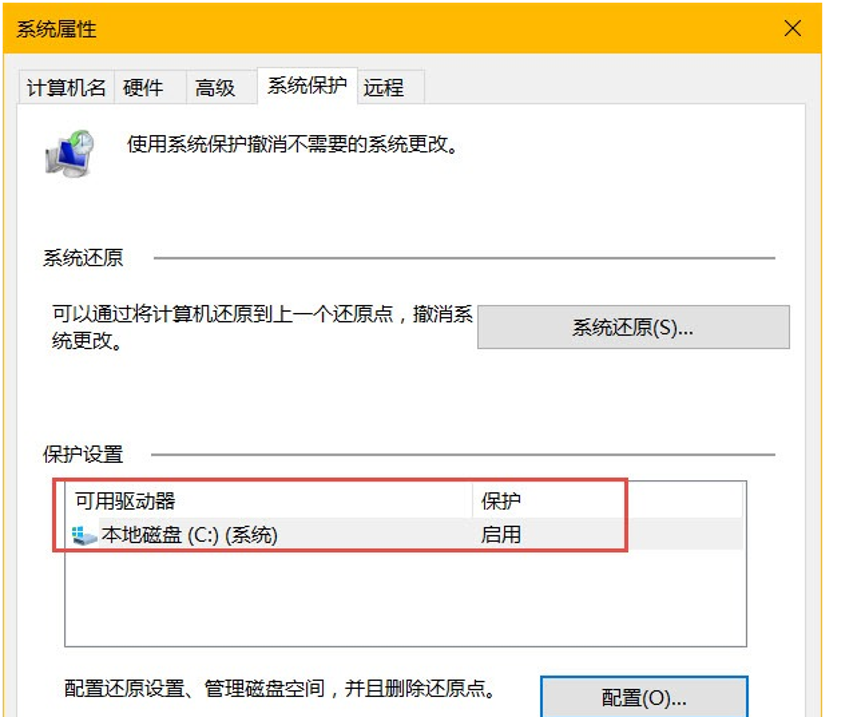 2. 確保系統(tǒng)磁盤(pán)的保護(hù)功能已經(jīng)啟用。