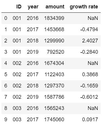 data["growth rate"]=round(s,4)data.head(10) #由于數(shù)據(jù)集比較長(zhǎng),只查看前十行