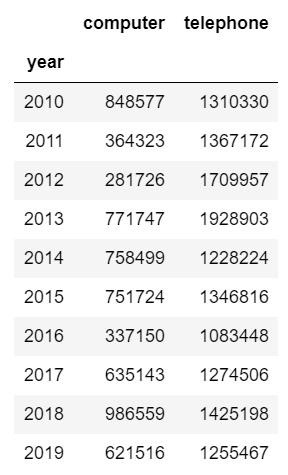 df1 = df.set_index("year") #為了不改變?cè)瓟?shù)據(jù),將充值索引后的數(shù)據(jù)賦值給df1df1 #查看修改索引后的數(shù)據(jù)集