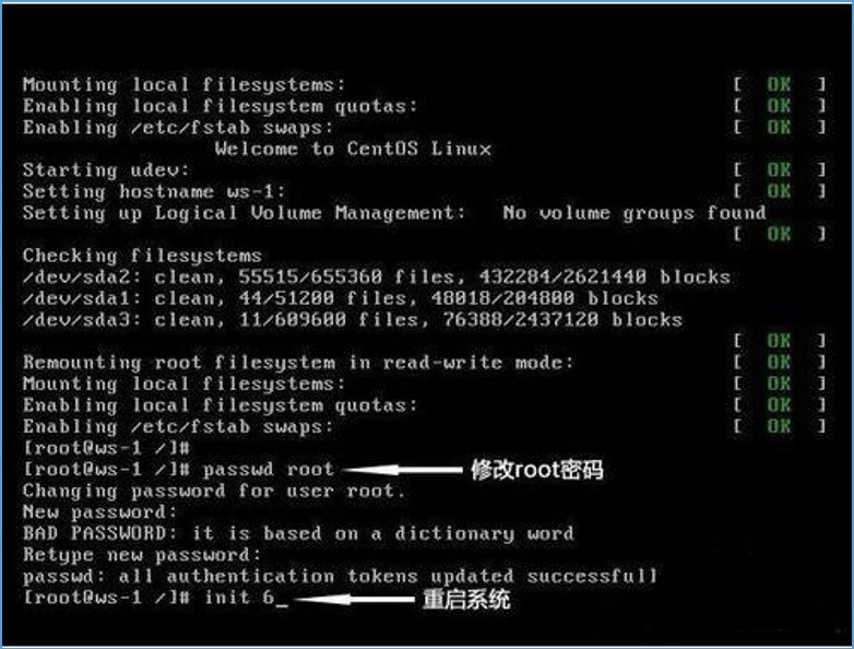 5、這樣重啟之后root密碼就已經(jīng)被修改了!