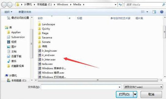 4、找到一個wav格式文件,然后選擇打開;如圖所示:*(電腦系統(tǒng)安裝)