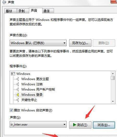 2、在聲音標(biāo)簽頁中,在下面的程序事件中,有一個Windows登錄,用鼠標(biāo)點擊一下這里;如圖所示:(電腦維護)