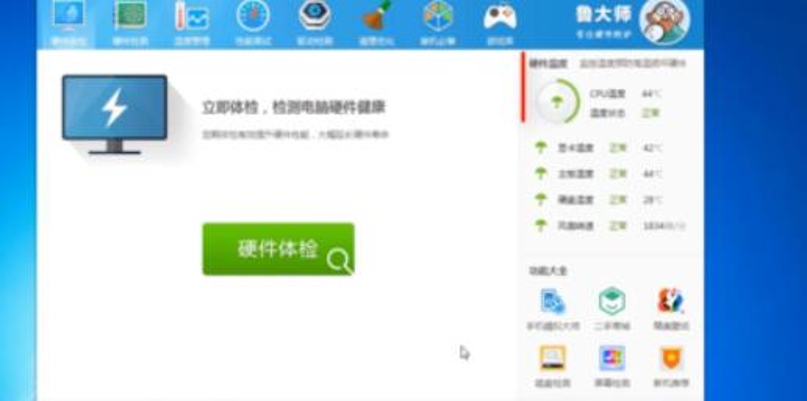 3.打開魯大師,在右上角可以看到“CPU溫度”。