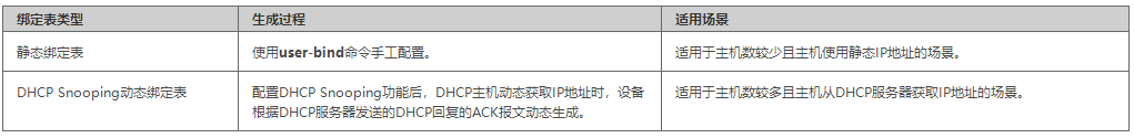 綁定表生成后,主機(jī)發(fā)送的報文,只有匹配綁定表才會允許通過,不匹配綁定表的報文都將被丟棄。缺省情況下,如果在沒有綁定表的情況下使能了IPSG,設(shè)備將拒絕除DHCP請求報文外的所有IP報文。