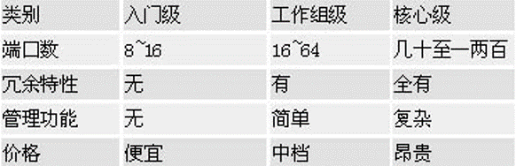 入門(mén)級(jí)交換機(jī)的應(yīng)用主要集中于8到16個(gè)端口的小型工作組,它適合低價(jià)格、很少需要擴(kuò)展和管理的場(chǎng)合。它們往往被用來(lái)代替集線(xiàn)器,可以提供比集線(xiàn)器更高的帶寬和提供更可靠的連接。人們一般不會(huì)單獨(dú)購(gòu)買(mǎi)入門(mén)級(jí)交換機(jī),而是經(jīng)常和其他級(jí)別交換機(jī)一起購(gòu)買(mǎi),以組成一個(gè)完整的存儲(chǔ)解決方案。入門(mén)級(jí)交換機(jī)提供有限級(jí)別的端口級(jí)聯(lián)能力。如果用戶(hù)單獨(dú)使用這類(lèi)低端設(shè)備時(shí),可能會(huì)遇到一些可管理性問(wèn)題。